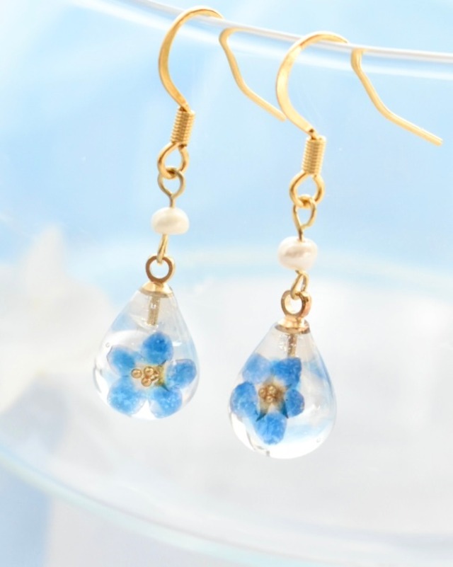 夢を宿す ひと雫 勿忘草 耳飾り