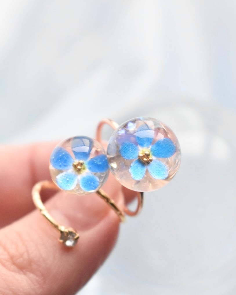 ❁指輪 サージカルステンレス 10号 濃いピンク(恋桜) 薄いピンク(淡桜)があります どちらかお選びください。 春の象徴である桜の美しさを そのまま閉じ込めた、本物の桜を使用した 指輪です。 春の伊吹を感じる桜 目の前でみる桜に このまま手のひらに乗せて ずっと綺麗に咲いてくれたらいいのになぁ と感じた事はありませんか? こちらの桜はブリザーブドフラワーです。 プリザーブドフラワーとは、 生花の美しさや質感を保ちながら、 長期間楽しむことができるように 特殊加工されたお花のことです。 ドライフラワーと違い色が大きく変わる事が少なく 長く長く桜を楽しむことが出来ます。 一年中枯れない桜を 傍に咲かせ あなたの心の花を咲かせますように… ※手作りの為 誤差が有ります。 約30mm 3g 金属アレルギー対応。 使用後は他の金具部分を柔らかい布(メガネ拭き等)で優しく拭き取っていただけますと綺麗になります。長く綺麗な状態を保つことができます。