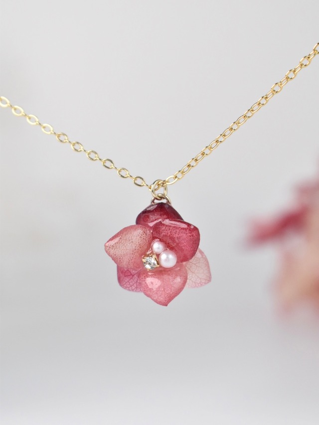 ❁⃘ネックレス 40cm+5cm(受注生産 以前より 紫陽花の耳飾りとお揃いで 指輪やネックレスを合わせたいです♡ と多くのリクエストを頂けていました。 この度 そんなリクエストに応えたくて 実現致しました。 願いの声を 届けてくださった皆様 ありがとうございました。 届くと良いな 願いが叶うと良いなと 希望を持ってご連絡をくださった方が居たからこそ 実現出来た商品化です。 皆様と咲かせた 希望のお花です。 そんな想いから このネックレスには 『希望の花』とタイトルを付けたいと思います♡ ネックレスの長さは40cmにアジャスター5cmを 用意させて頂きますが 希望の長さが有りましたら お伝えください。 チェーンの素材は お肌に優しいニッケルフリー素材となります。 ※手作りの為 誤差が有ります。 サイズ モチーフ全長約1.5cm 金属アレルギー非対応。 チェーンのみニッケルフリー素材です。 使用後は他の金具部分を柔らかい布(メガネ拭き等)で優しく拭き取っていただけますと綺麗になります。長く綺麗な状態を保つことができます。