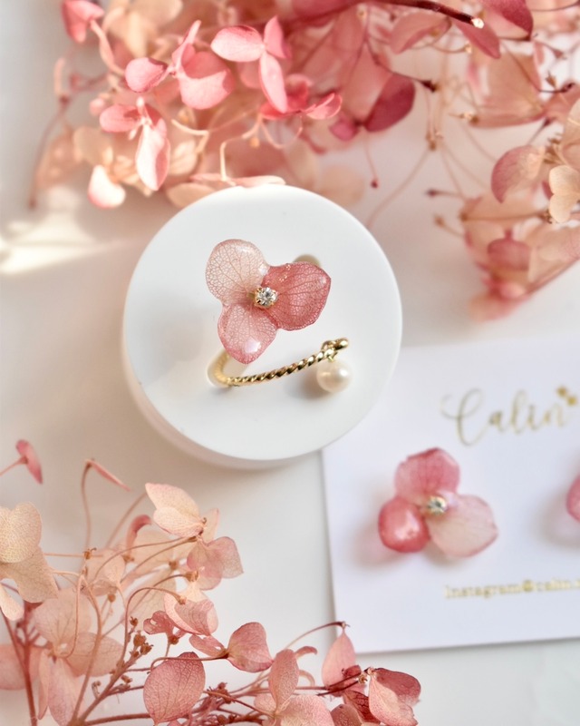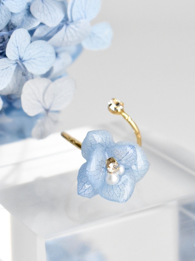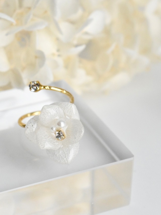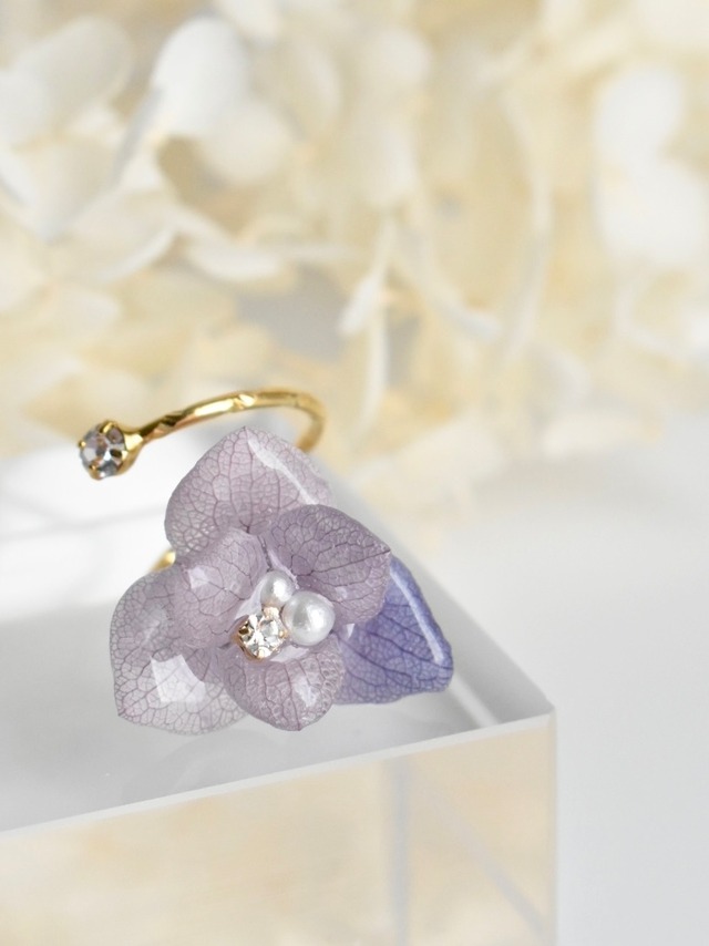 ❁⃘指輪 (サージカルステンレス)フリーサイズ(受注生産 ※耳飾りは別売りです。お揃いで着用頂けますと 統一感が出ます 集まって咲く紫陽花 じっと見つめると 小さな小さな紫陽花と 目が合います そっと咲き誇る紫陽花を そっと身につけて そっと傍に咲かせてください❁⃘ コロンと揺れるパールは淡水パールです。 清らかな葉脈の美しさ 色を堪能出来ますように サイズの調整はモチーフでは無く 金具の部分を優しく開いたり閉じたりして 調整してください♡ ※手作りの為 誤差が有ります。 サイズ モチーフ全長約15mm 重さ1g 金属アレルギー対応。 使用後は他の金具部分を柔らかい布(メガネ拭き等)で優しく拭き取っていただけますと綺麗になります。長く綺麗な状態を保つことができます。