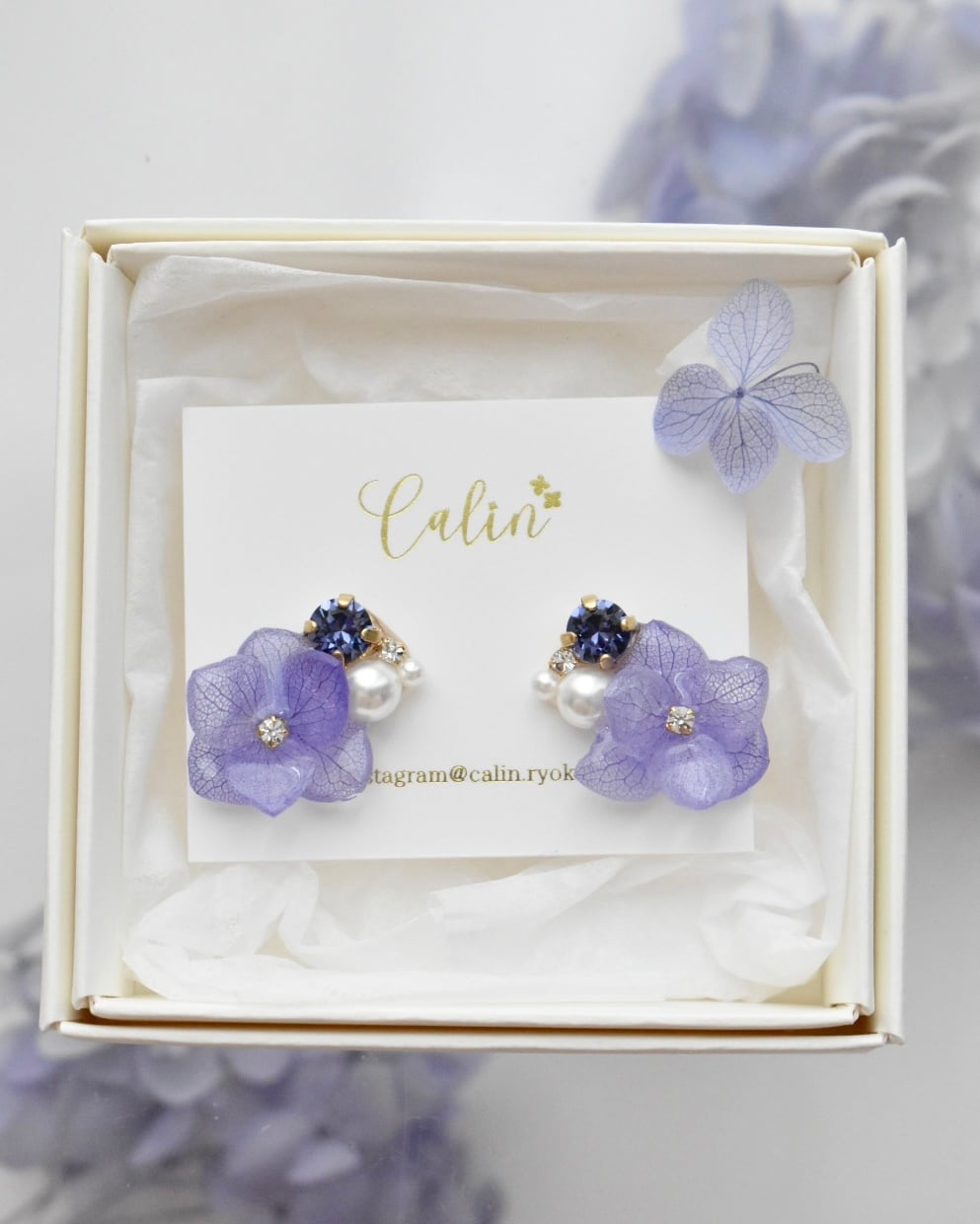 素材:スワロフスキー、パール、花、金具(アレルギー対応)