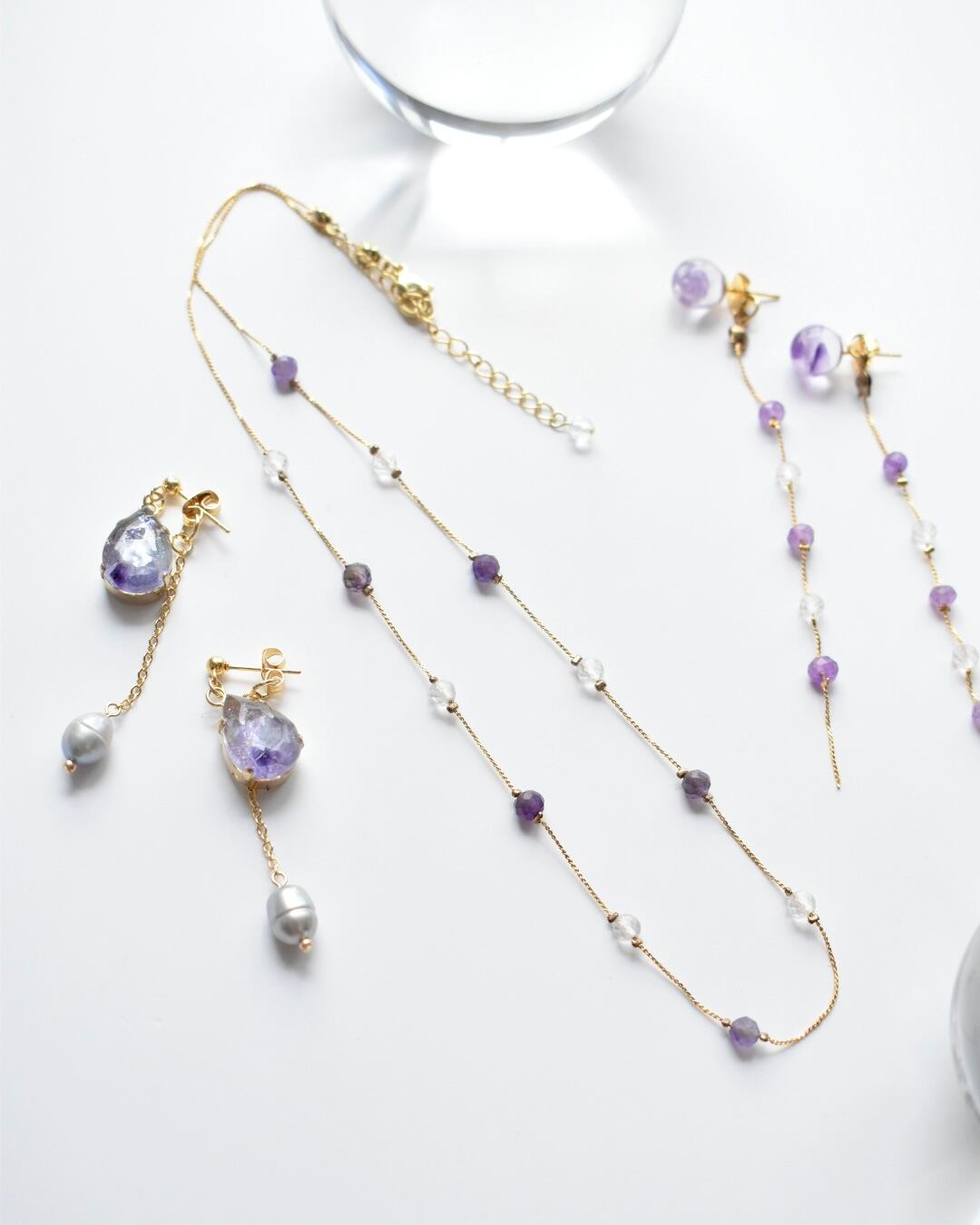 透き通る水晶と、やわらかな紫のアメジストを