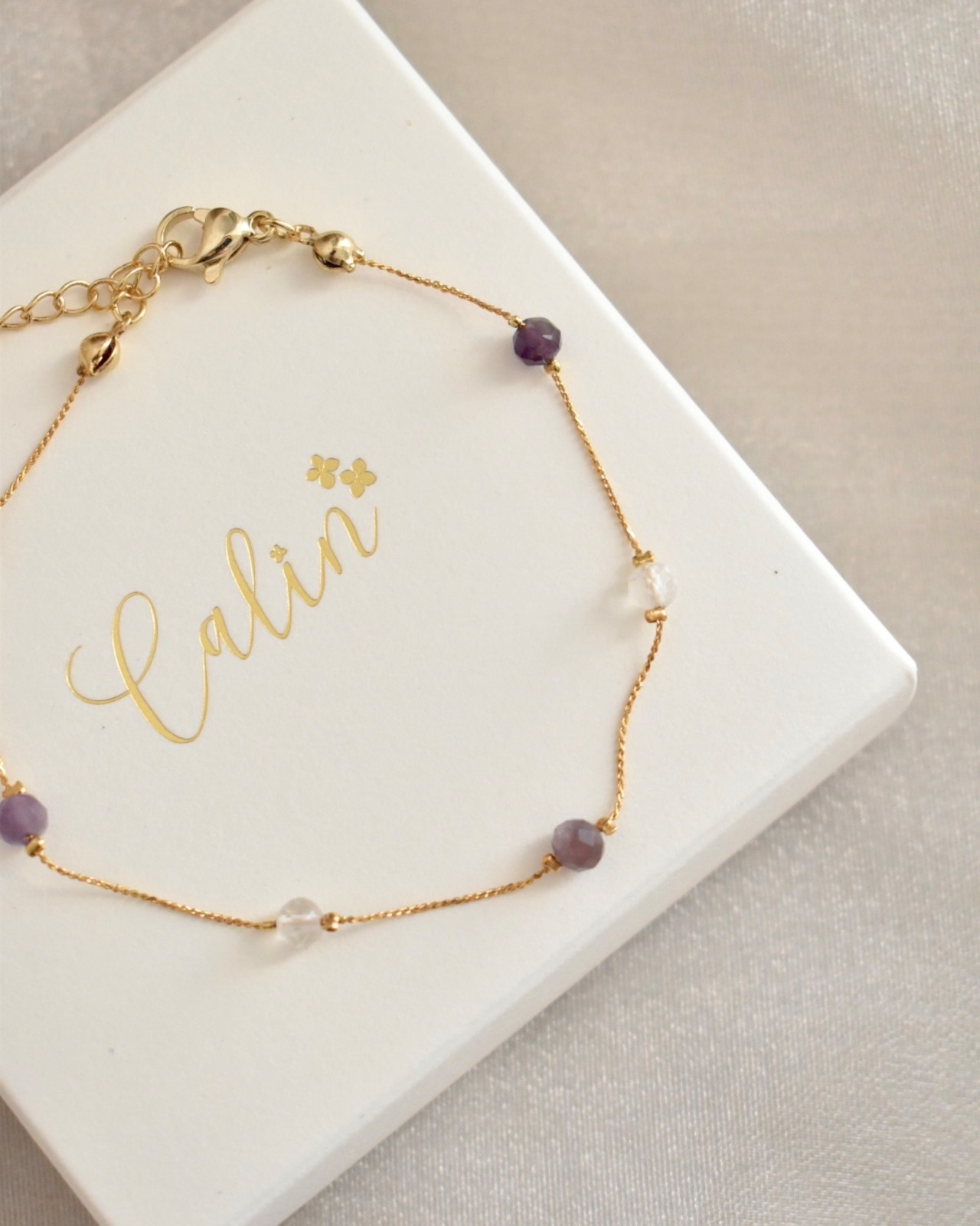 繊細なチェーンに丁寧に繋いだブレスレット。