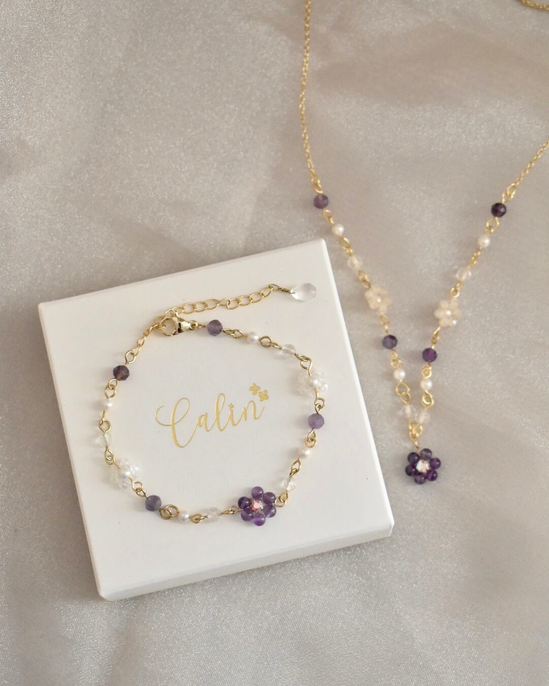 もう大丈夫 – アメジストの小さな花ブレスレット
