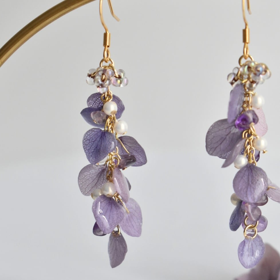 藤の花【奇跡を呼ぶ】 紫 紫陽花 耳飾り